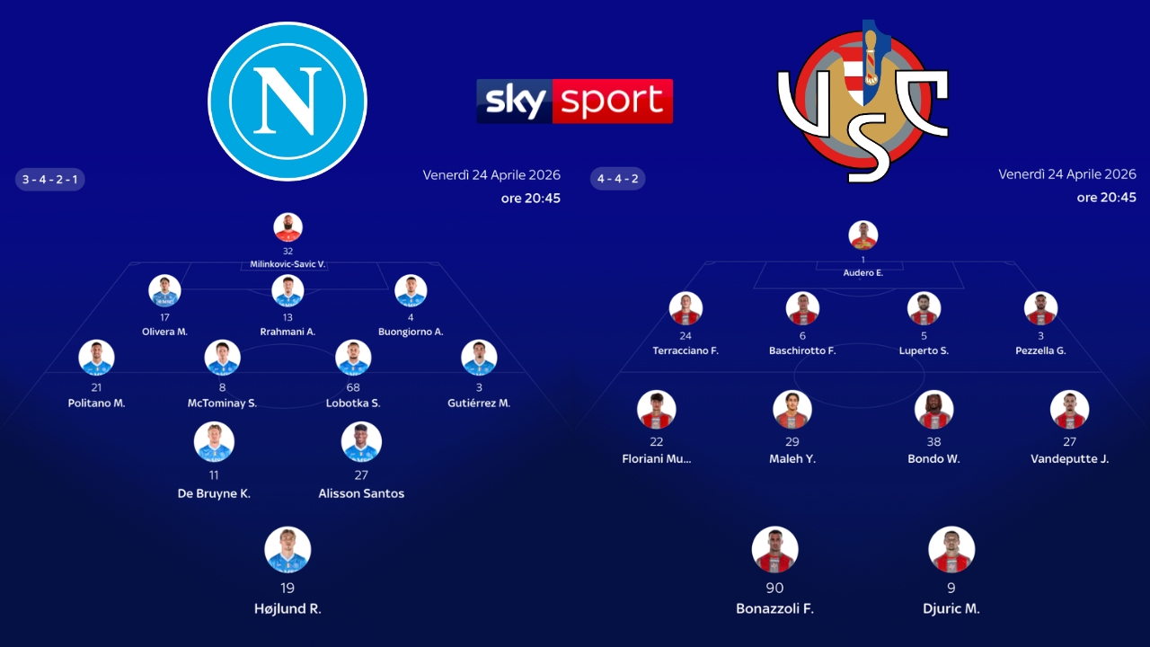 Quindi sono queste le probabili formazioni di Napoli-Cremonese proposte da Sky Sport: