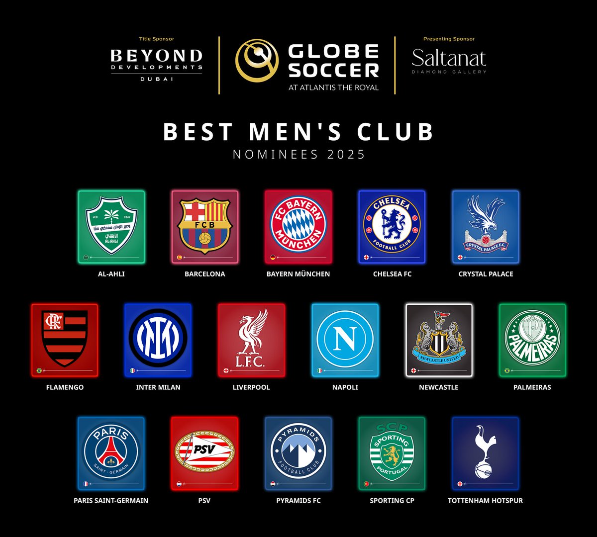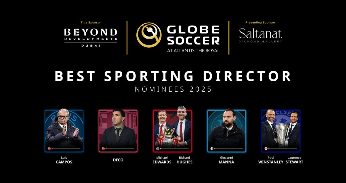 Sarà presente anche la SSC Napoli in quest'edizione dei Globe Soccer Awards 2025 con ben cinque candidature. Dalla miglior squadra al miglior allenatore, e con Scott McTominay, Antonio Conte e Giovanni Manna protagonisti in diverse categorie. Di seguito tutte le nomination:
