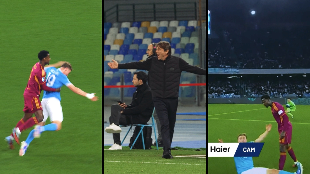 La puntata del BordoCam di Napoli-Roma mostra sotto la lente d'ingrandimento l'episodio Hojlund-Ndicka del primo tempo: Rasmus si gioca sul difensore, che lo cintura. Ndicka gli urla qualcosa in faccia mentre Hojlund protesta, mentre Mancini gli fa il gesto di rialzarsi. Conte in panchina protesta immediatamente, poi sarcastico dice senza darsi pace: "Allora andiamo, allora andiamo!". Mentre Gasperini invita la punta ad alzarsi. "Stai su, stai su!".
