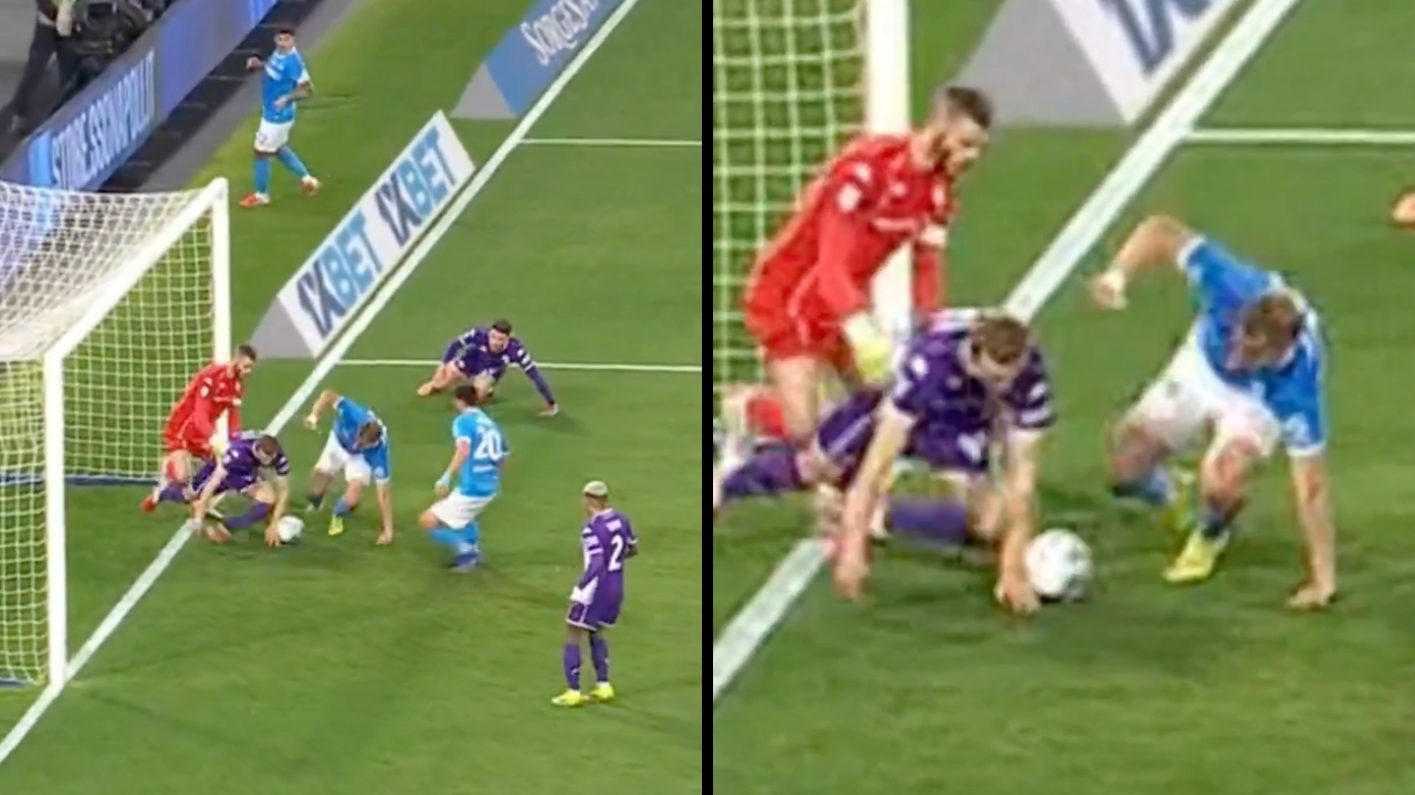Ultime notizie SSC Napoli - Nuova partita, nuovo episodio discutibile, non rivisto al VAR né fatto rivedere all'on-field-review all'arbitro La Penna: nel corso di Napoli-Fiorentina, sul risultato di 1-0 e nel primo tempo, sugli sviluppi di un'azione nell'area piccola, Comuzzo la tocca con la mano da terra dopo l'intervento di Hojlund.