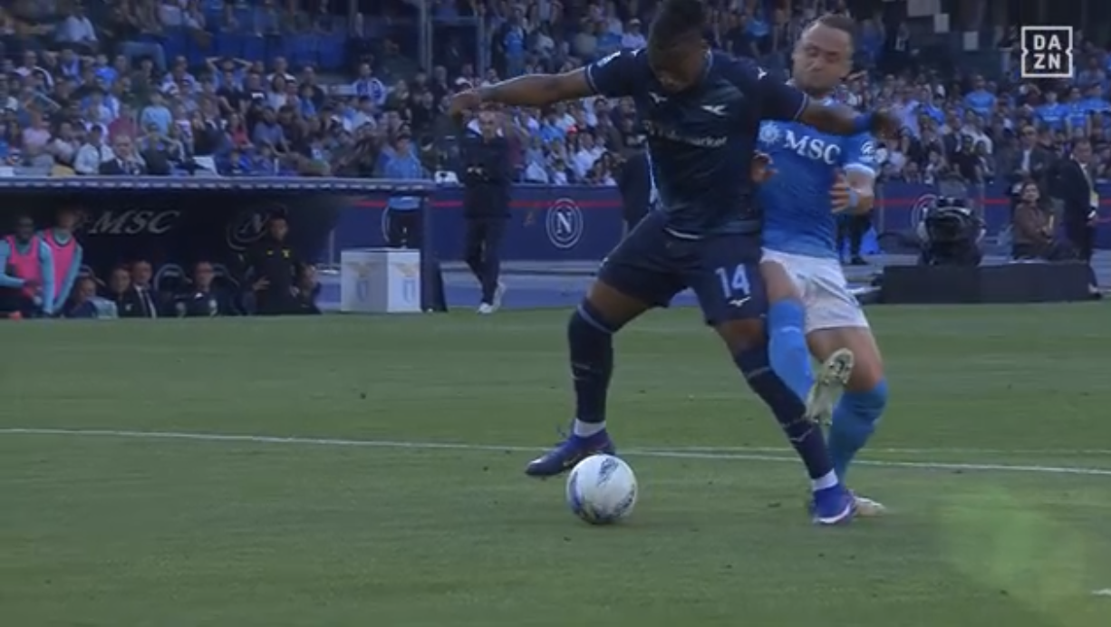Notizie calcio Napoli - Al minuto 29 Lobotka stende in area di rigore Noslin. L'arbitro assegna il penalty a favore della Lazio di Maurizio Sarri. La spiegazione di Luca Marelli a DAZN: