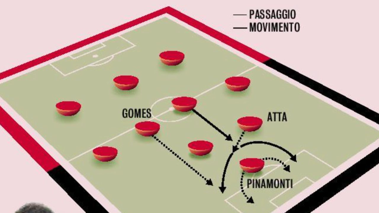 L'edizione odierna de La Gazzetta dello Sport in edicola oggi ha disegnato un 3-4-2-1 azzurro prendendo in considerazione gli ultimissimi nomi finiti nei radar azzurri per rinforzare la rosa in estate, con Atta, Joao Gomes e Pinamonti in campo. Nello scacchiere azzurro, Joao Gomes si posizionerebbe sul centro-destra nei due di centrocampo, con Atta in posizione avanzata, sulla sinistra alle spalle della prima punta Pinamonti.