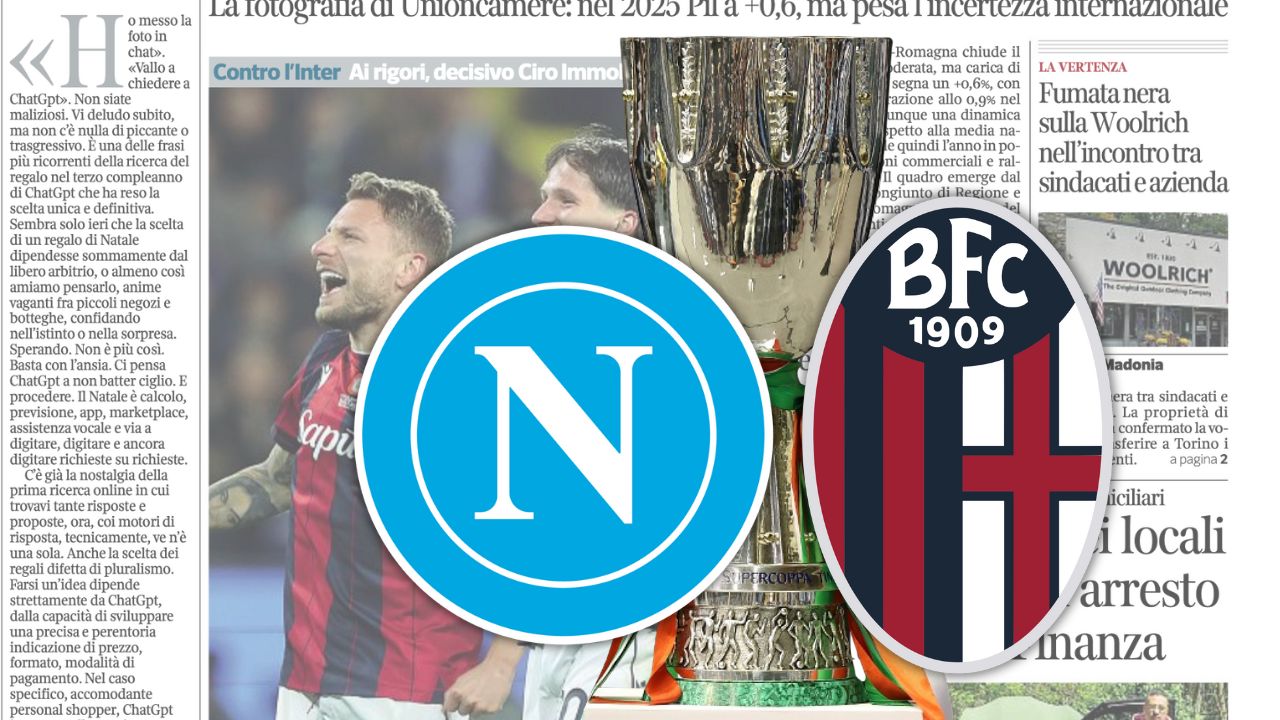 “Aspettavano tutti Napoli-Inter o Milan-Inter e invece sarà Napoli-Bologna. Ovvero «la vera finale». Lo aveva detto senza mezzi termini anche il tecnico interista Chivu alla vigilia, ammettendo il regalo del format attuale rispetto alla formula più classica”, si legge sul Corriere di Bologna oggi in edicola.