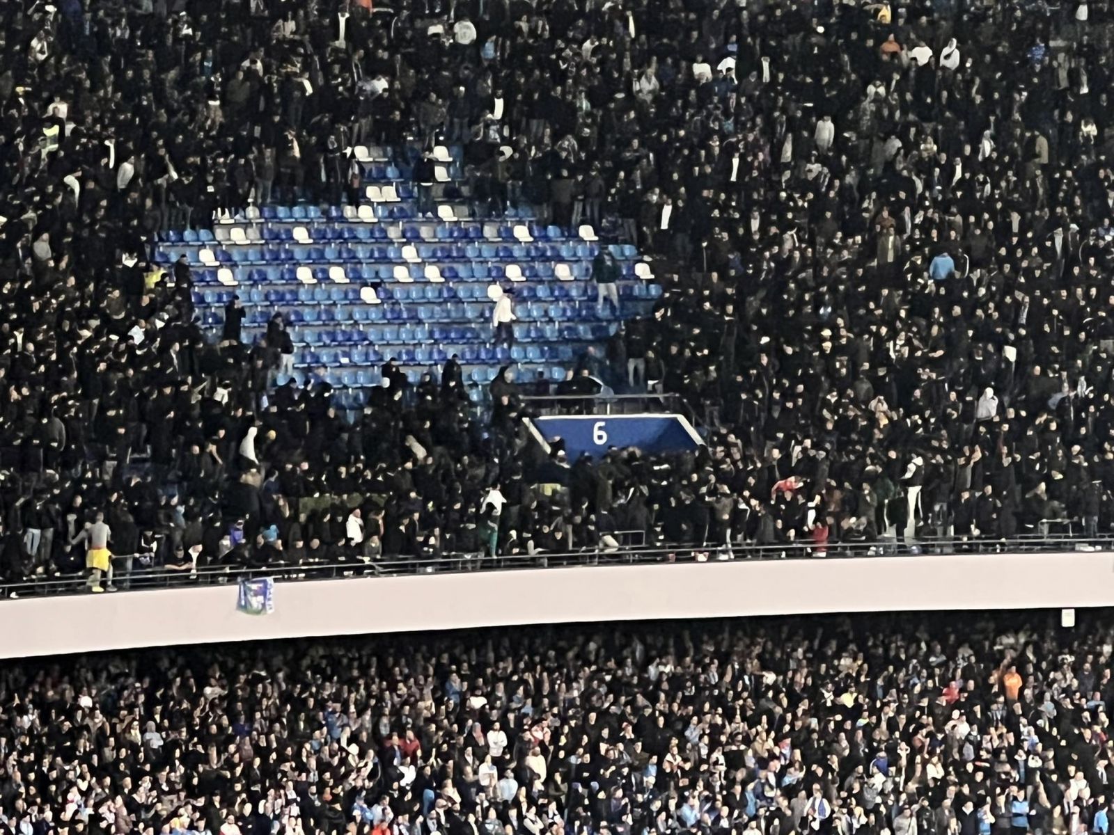 "Alla base degli attriti interni la differenza di vedute tra i gruppi organizzati che hanno deciso di sottoscrivere la tessera del tifoso, diventata poi requisito fondamentale per l’acquisto del biglietto nella sfida di Champions League contro il Milan del prossimo 18 aprile. [...] La Questura di Napoli sta studiando le immagini dei fatti avvenuti e ieri ha notificato 24 sanzioni nel consueto report post-partita, di cui 4 denunce per scavalcamento, minacce, possesso d’armi da taglio e sostanze stupefacenti. Per i soggetti denunciati è stato emesso anche il Daspo".