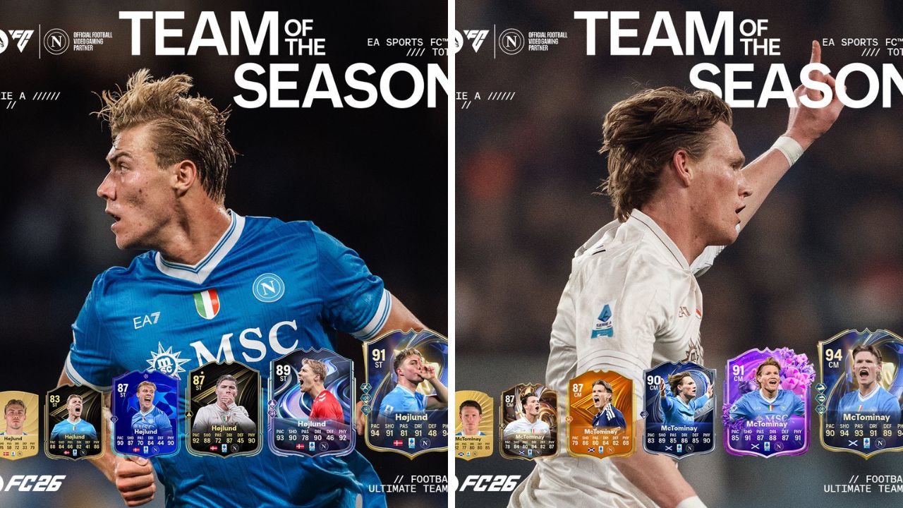 Ultime notizie SSC Napoli - Due calciatori azzurri sono nel Team of the Season della Serie A su Ea Sports FC26: si tratta di Scott McTominay e Rasmus Hojlund, potenziati in due carte speciali. I due calciatori del Napoli sono stati così celebrati via social dal Napoli: