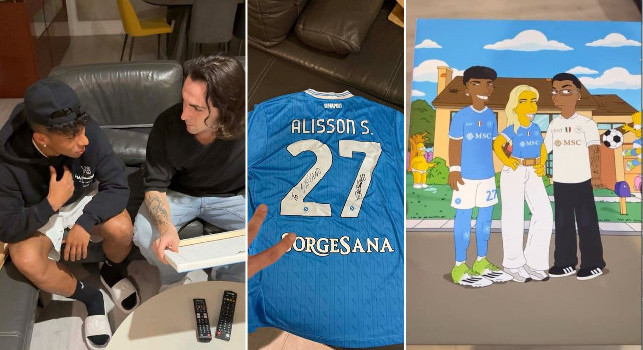 Il brasiliano, che la SSC Napoli sembra già orientato a riscattare dallo Sporting CP, ha ricevuto un quadro speciale ‘versione Simpson’ - a firma dell’artista Stefano Monda (Steart) - che ritrae l’attaccante verdeoro col fratello e la mamma.