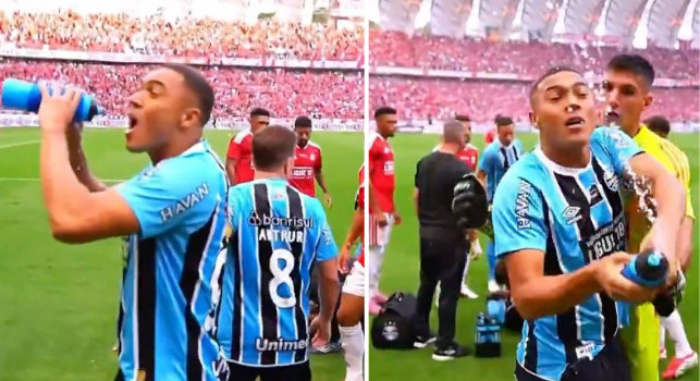 L'attaccante si è reso protagonista di una provocazione singolare ieri in campo: prende la borraccia per... fingere di bere ma in realtà spruzza in faccia agli avversari. E le parti erano solo al minuti 5 del primo tempo... alla fine il suo Grêmio ha vinto il titolo.